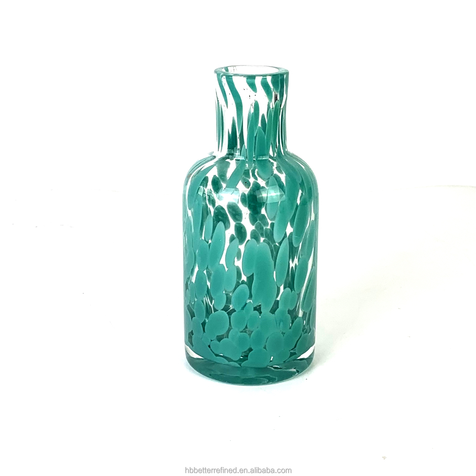 [Handmade]: The color of hand-blown vases will be slightly different. Handmade vases come with minuscule bubbles and rippled lines. The differences inherent in handcrafting make each vase unique. Not a machine painted color.